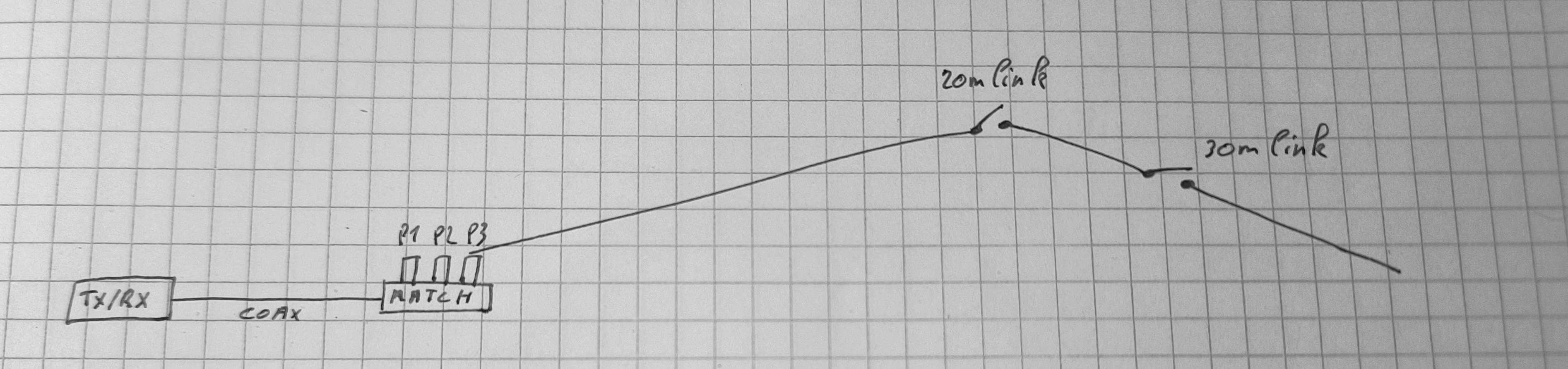 - Tuning on 15m band (21.1 MHz) is now done using the 30m link and selecting 75:1 transformer on the match box. 1.5 < SWR < 2.5 . Not ideal, but usable.